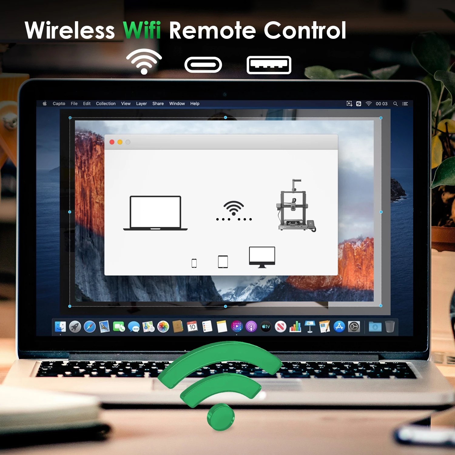 - Control Remoto vía WiFi: Monitoriza y controla tus impresiones de manera remota con la conectividad WiFi integrada.