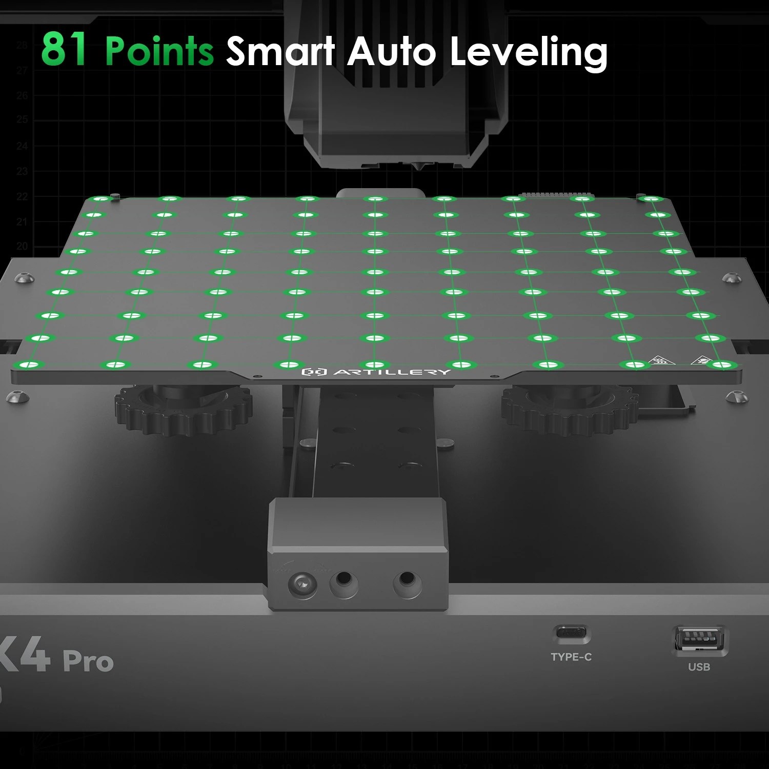 - Nivelación Automática en 81 Puntos: Detecta y ajusta automáticamente la cama para asegurar una primera capa perfecta en cada impresión.