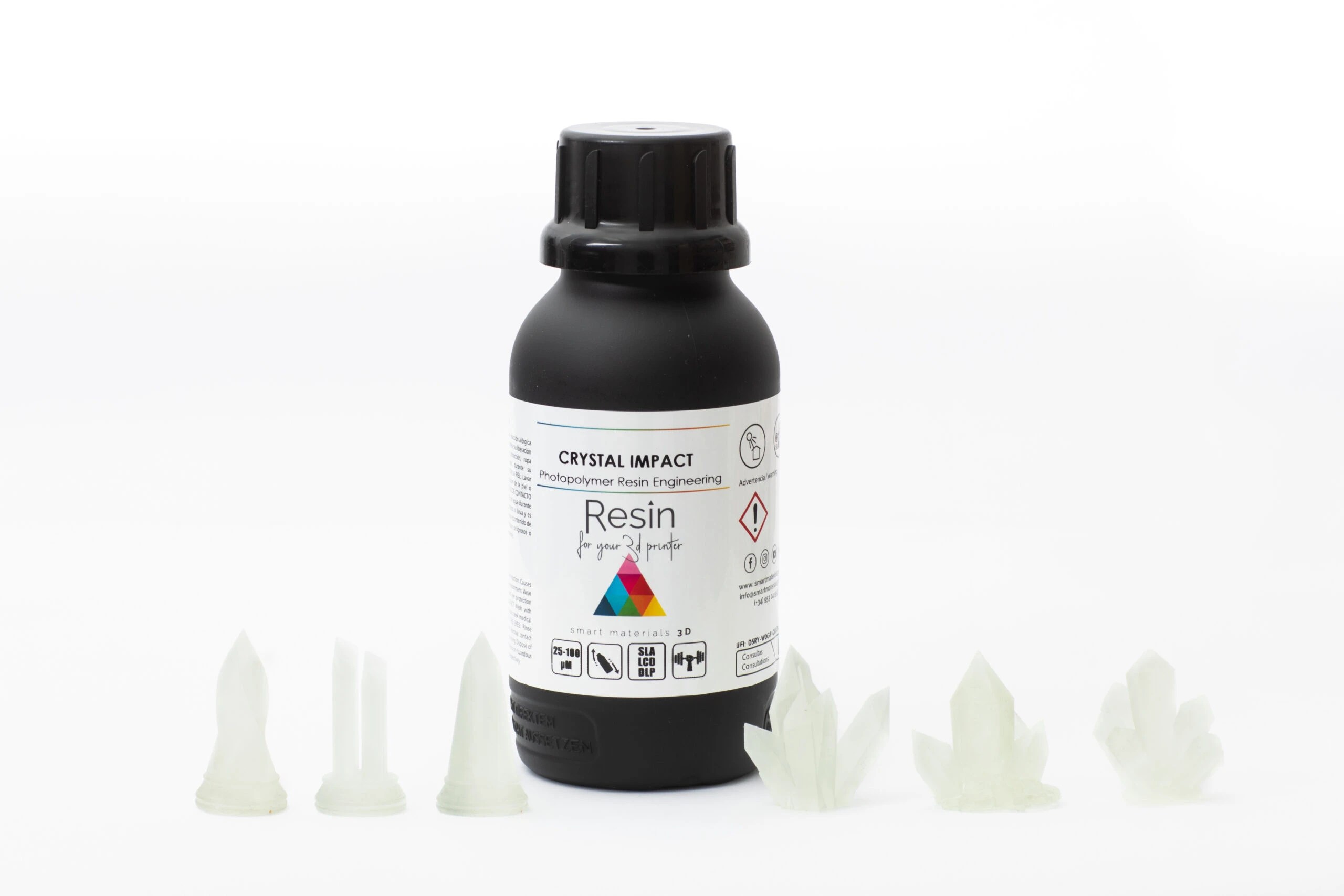 Crystal Impact Resin es una resina técnica transparente con una gran resistencia al impacto. Su uso está indicado para la fabricación de piezas que requieran una resistencia extra o estén sometidas a tensiones de forma repetida, además gracias a su baja absorción de humedad y resistencia a la intemperie está indicada para uso en exterior.