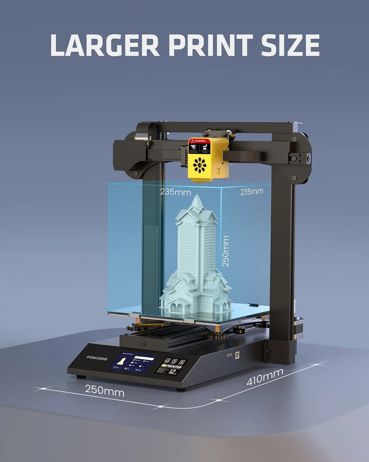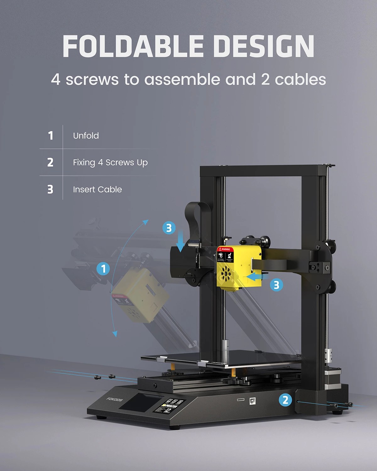 - Diseño plegable único: las impresoras 3D FOKOOS vienen preensambladas en un 99%, por lo que no hay necesidad de soportar un proceso de instalación complicado. Comience fácilmente su viaje 3D en menos de 3 minutos.