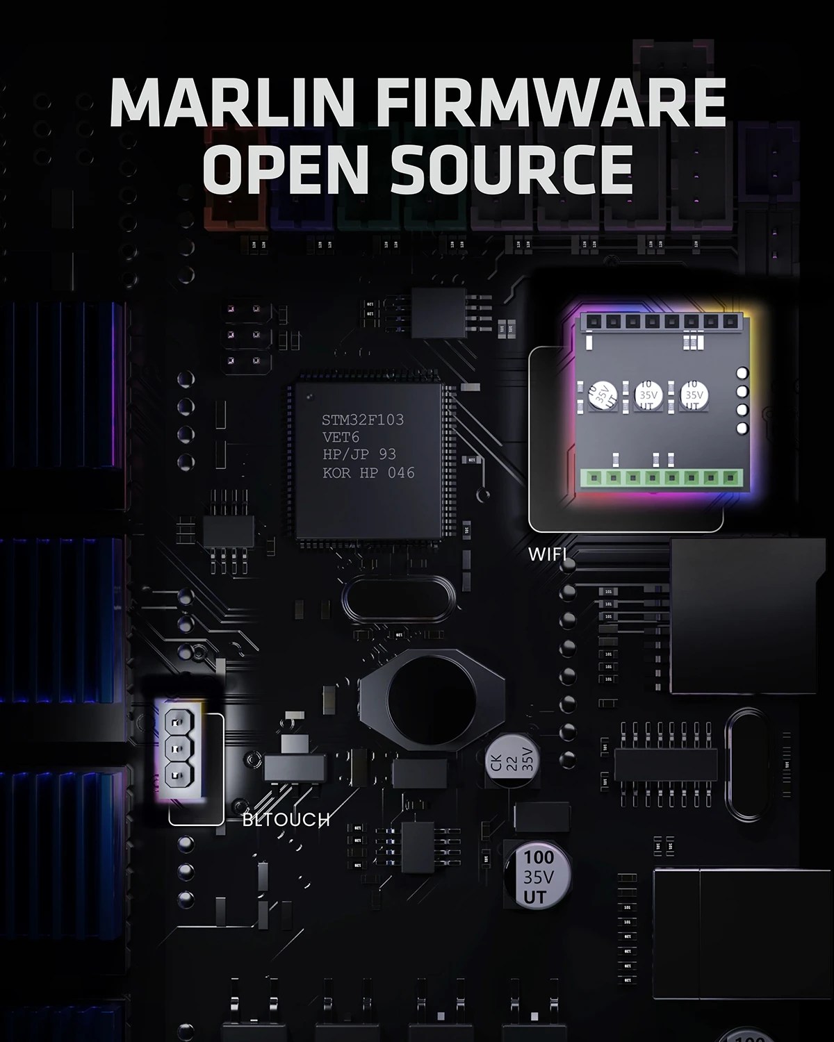 - Código abierto MARLIN: desarrollo personalizado de puertos externos y potente chip de control STM32, admite bltouch, wifi y otros módulos externos para explorar.