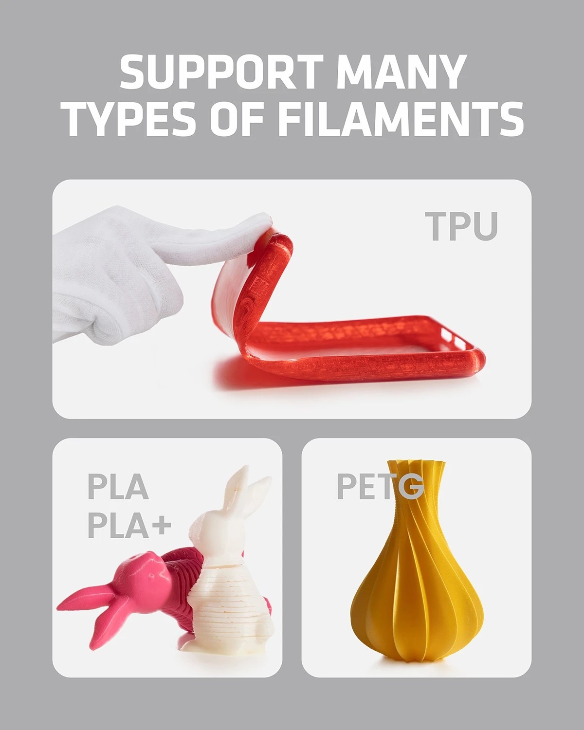 - Alta precisión y estabilidad: diseño de doble eje Z y eje Y, con carcasa y marco de chapa, gran espacio en la parte inferior, buena disipación de calor, lo que alarga la vida útil de la impresora 3D.