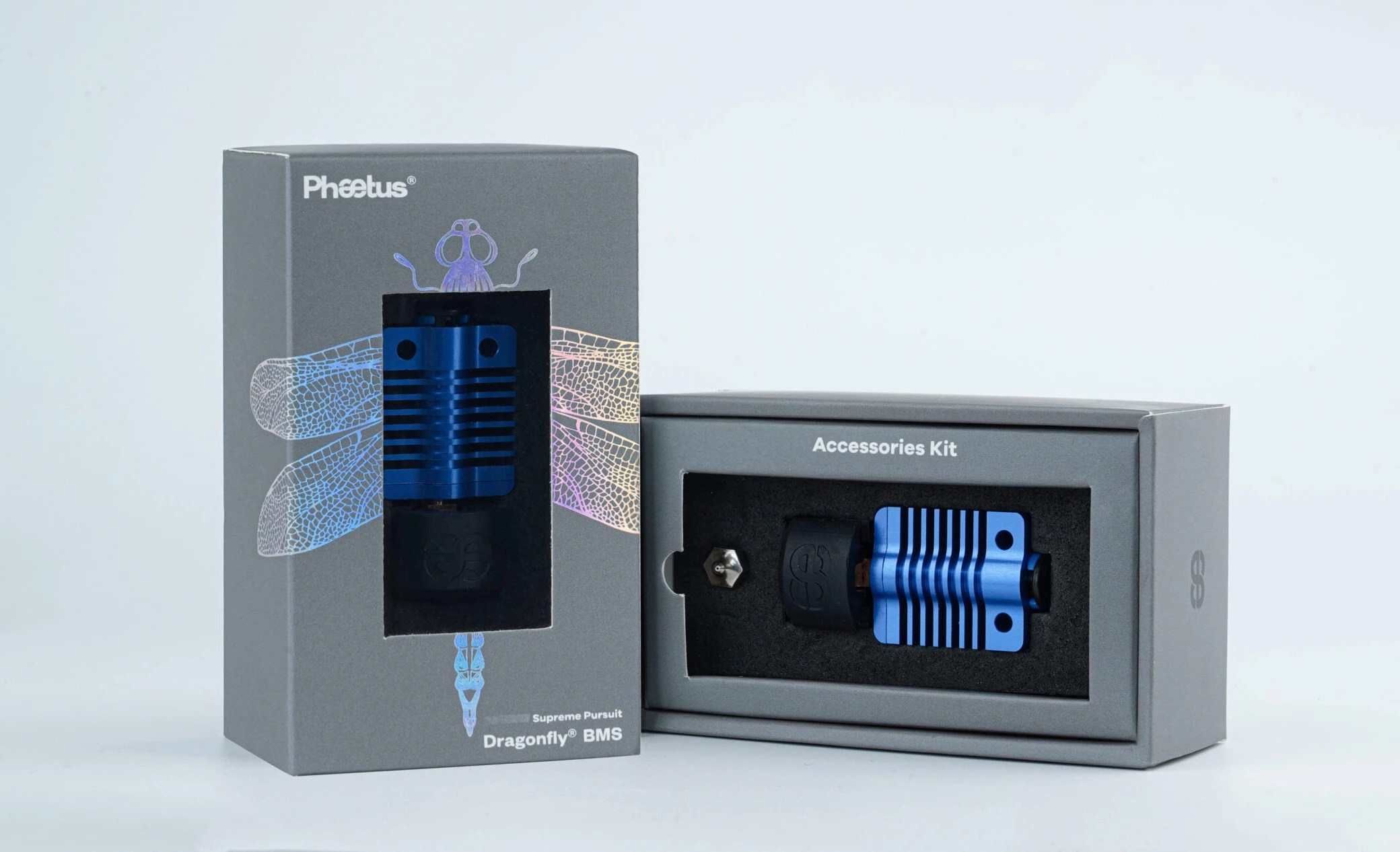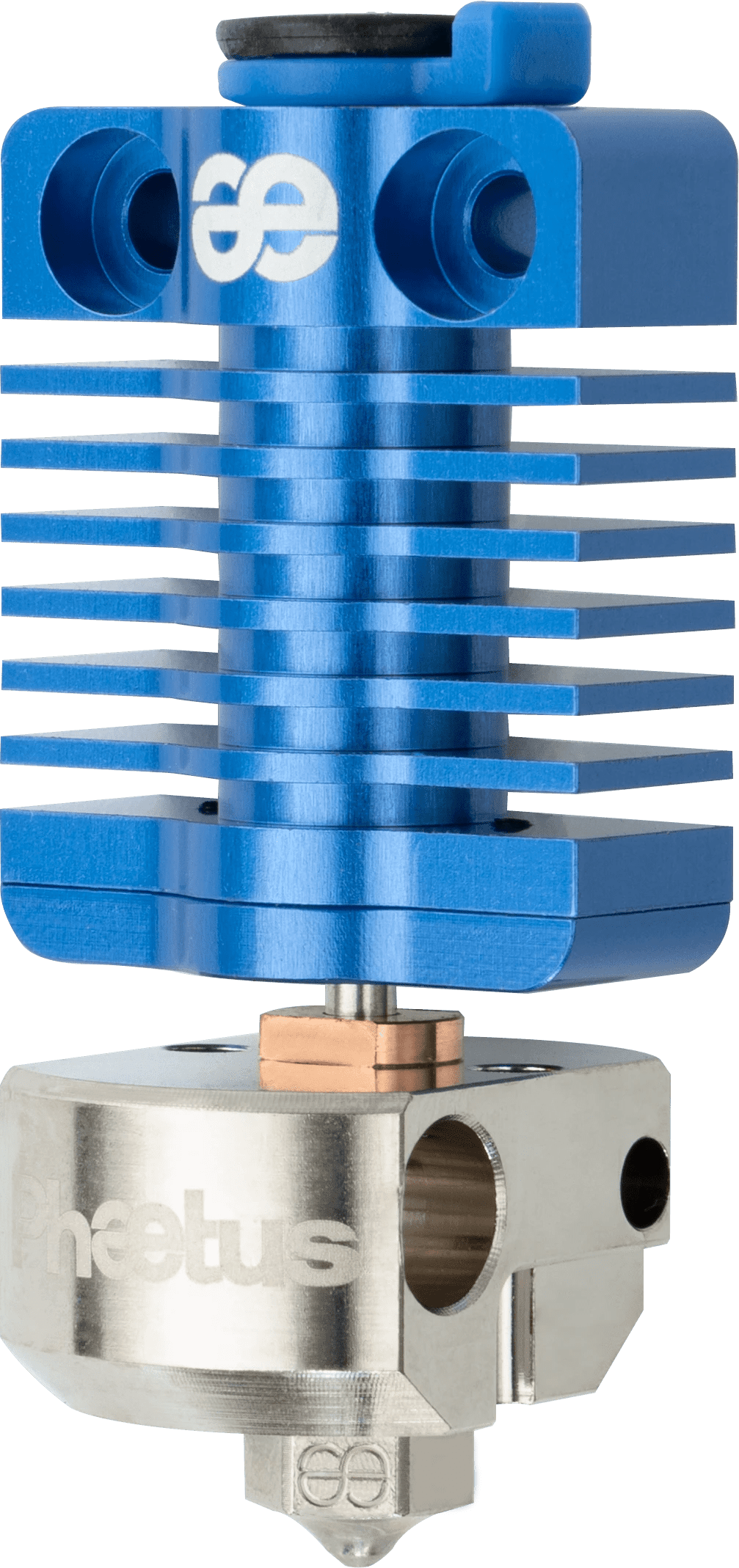 Phaetus Dragonfly es un hot-end totalmente metálico, hecho principalmente de aleación de cobre para una mejor conductividad térmica. Dependiendo del cartucho calefactor, el hot-end puede alcanzar temperaturas de hasta 500 ° C. Por lo tanto, se pueden procesar una amplia variedad de materiales de alta temperatura y también materiales abrasivos con Dragonfly gracias al diseño totalmente metálico.