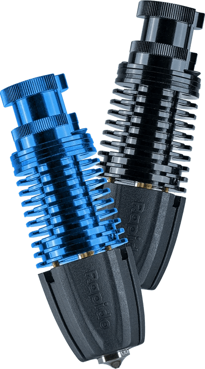 Nota: Ambos hot-ends se pueden usar con la boquilla V6 y Volcano. Sin embargo, para usar la boquilla V6 en el hot-end Rapido HF, se requiere un adaptador separado, que se incluye en el kit de actualización Rapido.