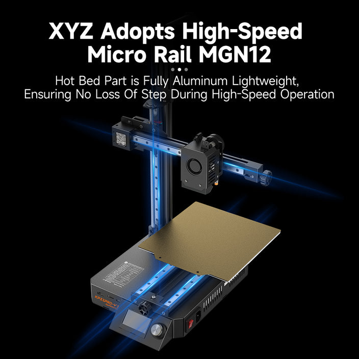 KP3S Pro V2 tiene una placa base potente con firmware Klipper instalado. No se requiere Raspberry Pi. Impresión de alta calidad con menos tiempo de espera. KP3S Pro V2 tiene una impresión de alta velocidad de 350 mm/s y una aceleración de 10000 mm/s². El módulo ADXL345 incorporado le garantiza una impresión de alta calidad a una velocidad de impresión rápida con compensación de vibración activa.