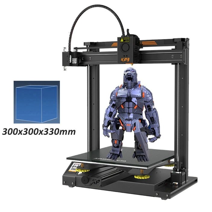 La impresora 3D Kingroon KP5L con tamaño de impresión de 300*300*330mm. Impresión más estable y precisa con guía de riel lineal SGR15 de doble eje en el eje XYZ. Kingroon KP5L hereda el extrusor directo Titan utilizado en Kingroon KP3S, que tiene una gran compatibilidad para la impresión de filamentos flexibles, como TPU, PLA, madera, etc. Placa base de 32 bits de alto rendimiento. Impresión ultra silenciosa con controlador paso a paso TMC2225. Ahora puede trabajar sin molestias en su sala de impresión.