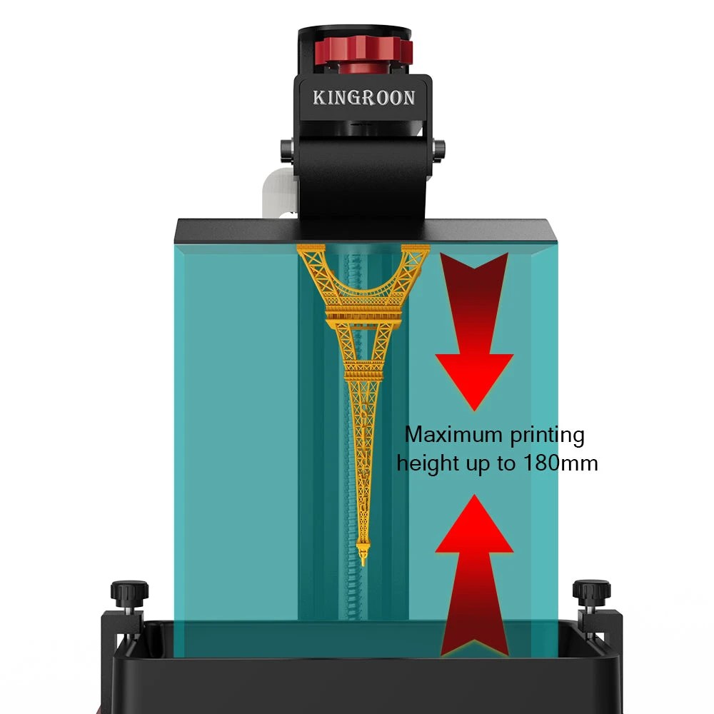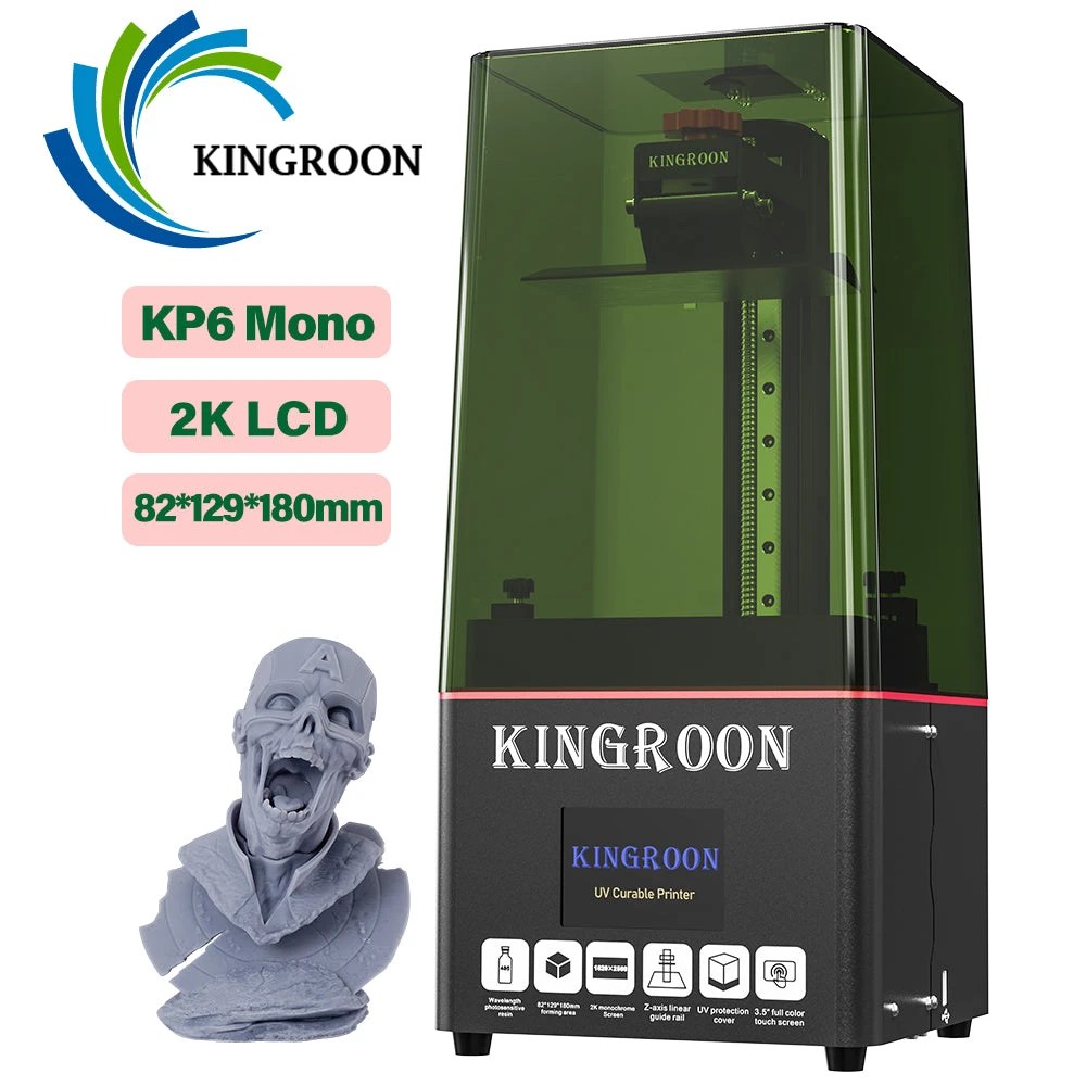 Impresora 3D de resina Kingroon KP6 LCD monocromática 2K de 6,08″ con un tamaño de impresión funcional de 129 mm (L) * 82 mm (W) * 180 mm (H).
