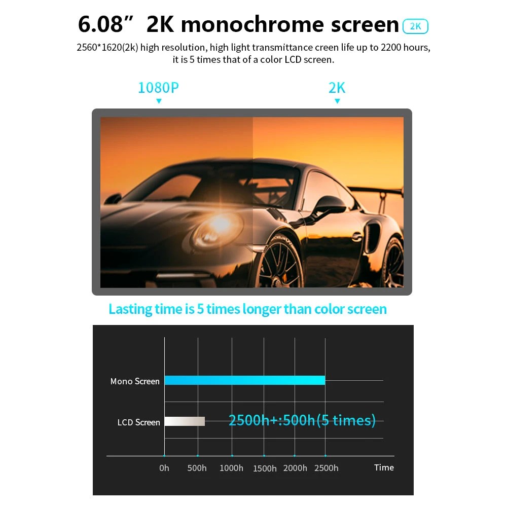3. Panel LCD de alta resolución (MONOCROMO) de 6,08» 2K.