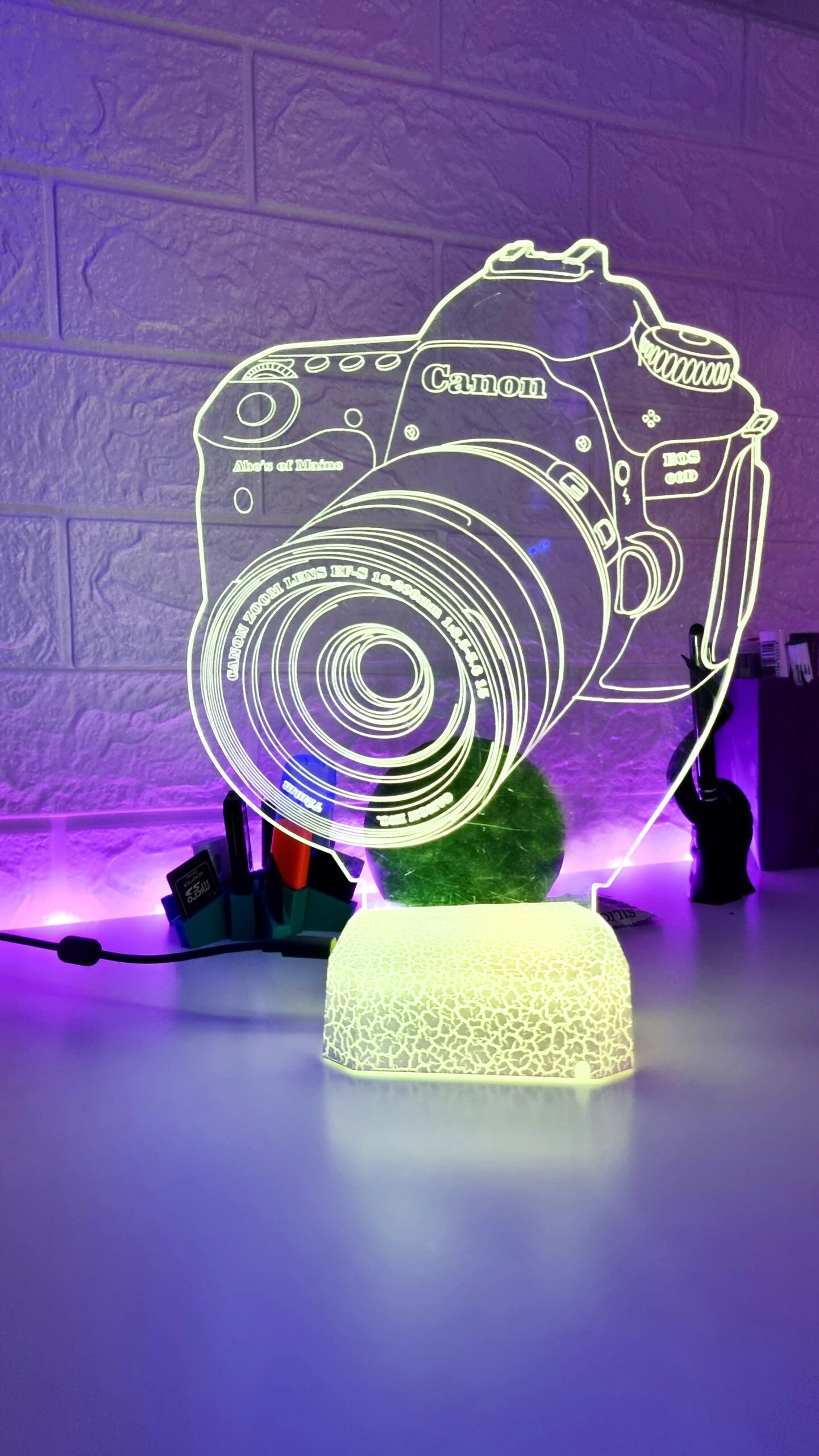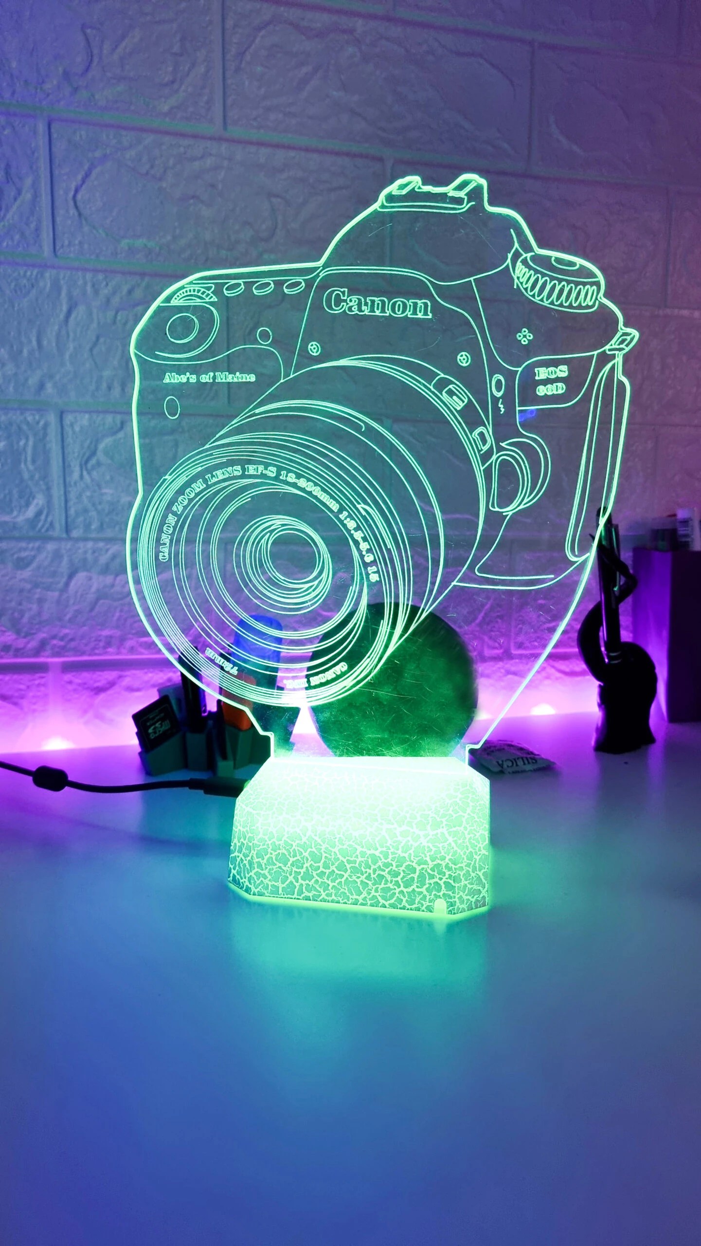 Lamparas LED personalizadas Grabadas sobre placa transparente y base efecto rocoso