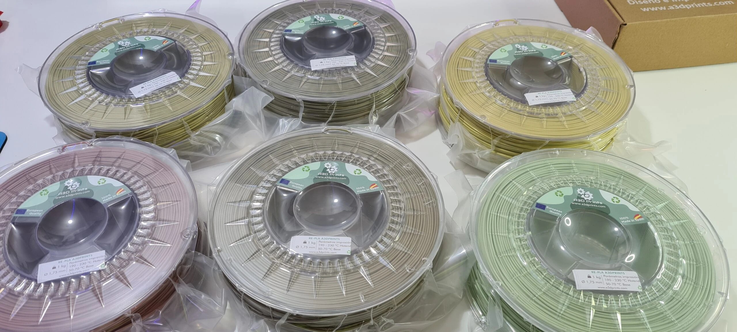 El RE-PLA A3Dprints cumple con todas las especificaciones de nuestro PLA Basic A3Dprints, su color en bobina es uniforme pero no es elegible debido a la mezcla de pigmentos dando asi a su vez un aspecto y colores únicos a cada bobina.